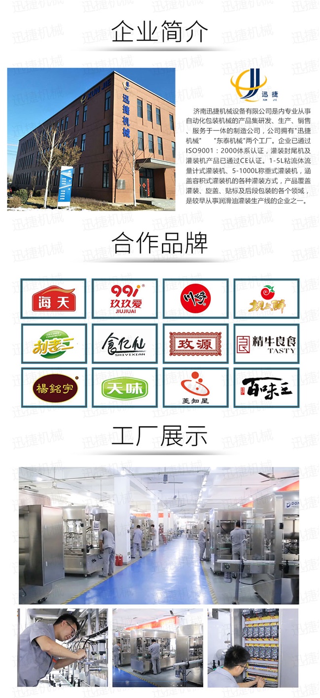 3、灌裝機采用橫推料的方式,大大縮短了下料斗到灌裝頭的距離,提高了灌裝速度,更重要的是解決了含油量大的物料在灌裝過程中出現的有些瓶油多,有些瓶醬多的灌裝難題,大大提高了灌裝精度。